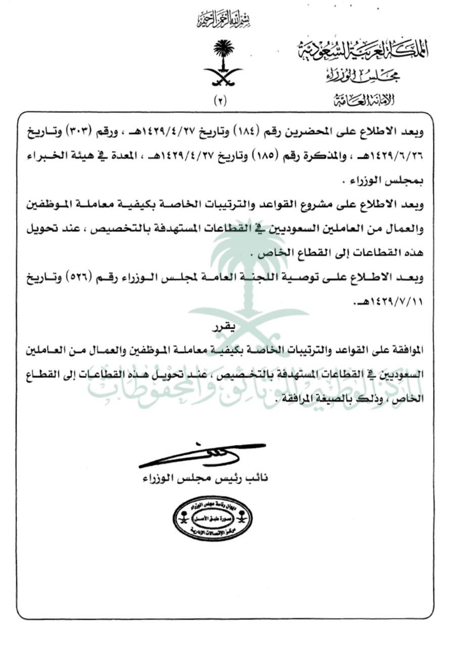 عقب قرار مجلس الوزراء الذي وافق على القواعد التنفيذية لتركيب العدادات الكودية، والتى تنص على أن يتم تركيب العداد الكودى مسبق الدفع لكافة المبانى والمنشآت المخالفة. قرار مجلس الوزراء رقم 1 لسنة 2001 بشأن إصدار اللائحة التنفيذية لقانون التمويل العقارى الصادر بالقانون رقم 148 لسنة 2001. قرارات المجلس الأعلى للتعليم التقاني. رئيس الوزراء يتابع موقف توصيل المرافق للأراضي الصناعية. قرارات من مجلس الوزراء، تساهم في دعم القطاع الخاص من دفع المقابل المالي المقرر بموجب البند (ثانيًا) من قرار مجلس الوزراء رقم (353) في عام 1432 هـ المعدل بقرار المجلي رقم (197) عام.